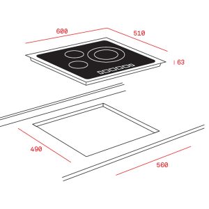 • 03 mặt bếp nấu: 01 vùng Ø 180/230 mm; 01 vùng Ø 180