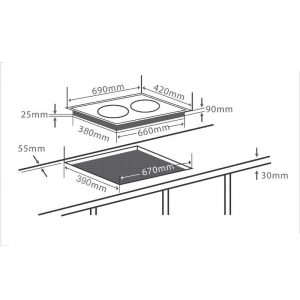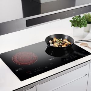 Bếp có 2 vùng nấu 1 của bếp từ và một của bếp điện. Cả 2 vùng nấu có đường kính mặt bếp là 22cm phù hợp với kích cỡ của nhiều loại xoong chảo khác nhau. Bề mặt bếp được làm bằng kính có khả năng chịu nhiệt, chịu lực va đạp mạnh. Bề mặt bếp luôn sáng bóng khiến không gian bếp nhà bạn trở nên ấm cúng, hiện đại và đầy tiện lợi.