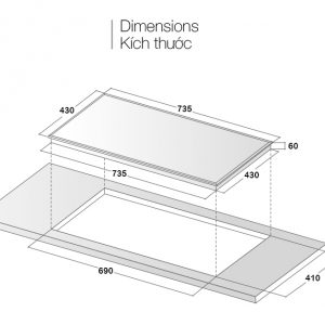 • Kích thước sản phẩm: 735R x 430S x 60C mm