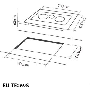 Bếp sử dụng điện nguồn 220-240V/50Hz phù hợp với lưới điện Việt Nam nên dễ dàng lắp đặt, thay thế. Bếp có kích thước mặt kính 730 x 430 mm và kích thước khoét đá 695 x 410 mm phù hợp với mọi không gian bếp.