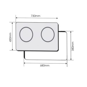 Kích thước mặt kính của bếp là 730 x 430mm, kích thước khoét đá là 680 x 380mm. Đây là kích thước phổ thông phù hợp với đai đa số không gian bếp của gia đình Việt. Sản phẩm được bảo hành chính hãng 2 năm tại nhà.