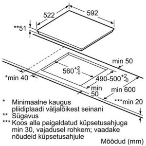 - Bếp từ Bosch PUJ611BB1E sử dụng công suất tối đa khoảng 6.800 W, sử dụng nguồn điện 220V – 240V với tần số 50/60 HZ.
