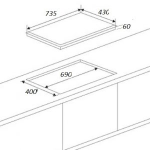 – Kích thước mặt bếp: 735R x 430S x 60C