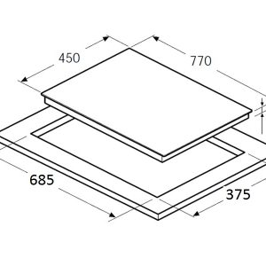 > 2 vùng nấu cảm ứng từ: 210 mm – 2/2,3 kW (gia nhiệt nhanh)