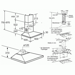Máy hút mùi Bosch DWW061451 sử dụng chất liệu chính là Inox toàn phần không gỉ dễ dàng lau chùi và vệ sinh. Máy được thiết kế phù hợp với những không gian bếp rộng được thiết kế theo phong cách hiện đại bởi máy có kích thước lớn, kích thước của máy là: 793 – 970 x 900 x 500 mm.\