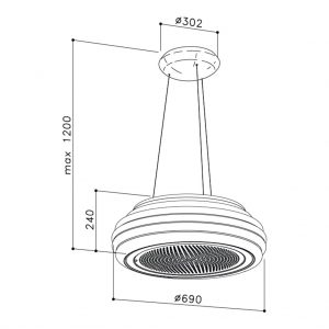Máy hút mùi đảo trang trí treo cáp, hình cầu, chế tạo bán thủ công từ gốm Ceramic kết hợp Inox 304.