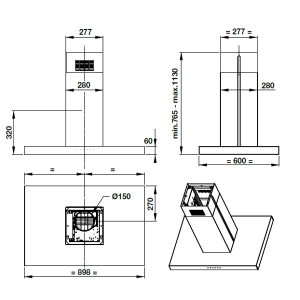 + Kích thước sản phẩm: 898R x 765 – 1130C x 600S mm