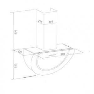 Kích thước máy hút mùi Malloca MC 9091E là 900x430x1450 mm rất dễ kết hợp với nhiều kiểu bếp và khung bếp.