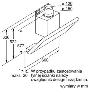 - Cửa kính thoát khí ra ngoài của Máy hút mùi ống khói Bosch DWK06E650 giá rẻ có đường kính 120/150mm, hút khí trực tiếp ra ngoài môi trường, khử sạch nhanh chóng.