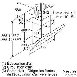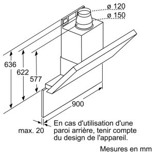 - Kích thước Máy hút mùi ống khói Bosch DWK09E650 là 898 x 500 x 806 – 1106 mm dễ lắp đặt.