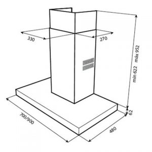 Có thể nói, máy hút mùi ống khói với kiểu dáng cách tân, khoang lọc khí nhiều góc cạnh, vừa mở rộng khoảng không để khử mùi nhanh chóng, vừa có tính thẩm mỹ cao. Sản phẩm có kích thước 900 mm phù hợp lắp đặt trong những gian bếp rộng rãi hoặc tủ bếp tương thích