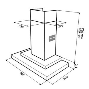 Có thể nói, máy hút mùi ống khói với kiểu dáng cách tân, tính thẩm mỹ cao. Đặc biệt, máy có tới 3 khoang hút nên tăng cao hiệu quả hút của sản phẩm. Sản phẩm có kích thước 900 mm nên hoàn toàn phù hợp lắp đặt ở mọi không gian bếp.