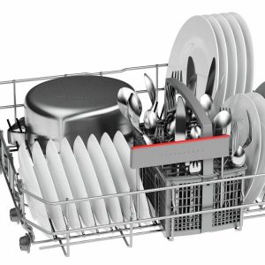- Máy rửa bát Bosch là dòng máy lắp âm toàn phần, với dung tích rửa cho 9 bộ bát đĩa Châu Âu. Lượng nước tiêu thụ trong 1 chu trình rửa là vào khoảng 9,5l/ 1 chu trình rửa thông thường ở chế độ Eco.