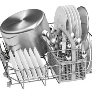 - Máy rửa bát Bosch làm bằng chất liệu thép không gỉ cao cấp bền đẹp, thiết kế mở ra phía trước tiện lợi sắp xếp bát đũa xoong nồi vào.