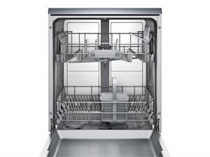 - Bên trong máy có hai ngăn inox để xếp bát đĩa. máy rửa bát Bosch âm tủ SMS50D48EU được thiết kế để rửa tối đa 13 bộ bát đĩa Châu Âu.